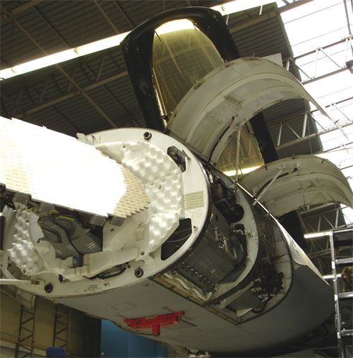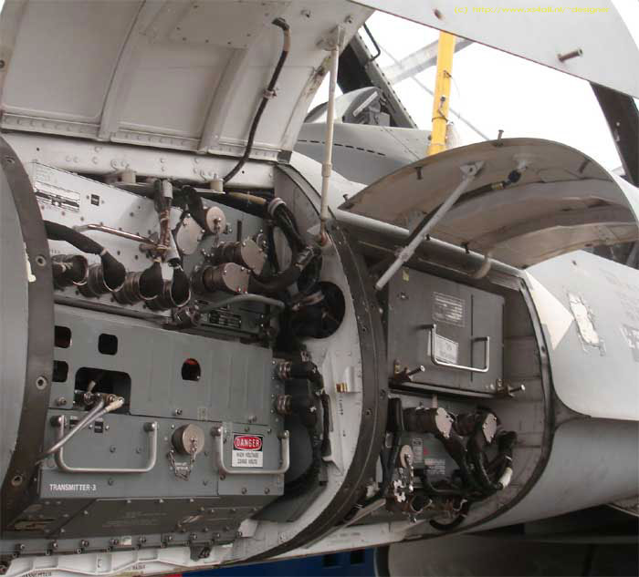 ![]() instructional airframe details: bay looking forward into the air intake duct . ![]() ![]() hydrazine tank of the Emergency Power Unit (EPU) . ![]() avionics and bays with various fuse boxes ![]() ![]() danger...hydrazine! .