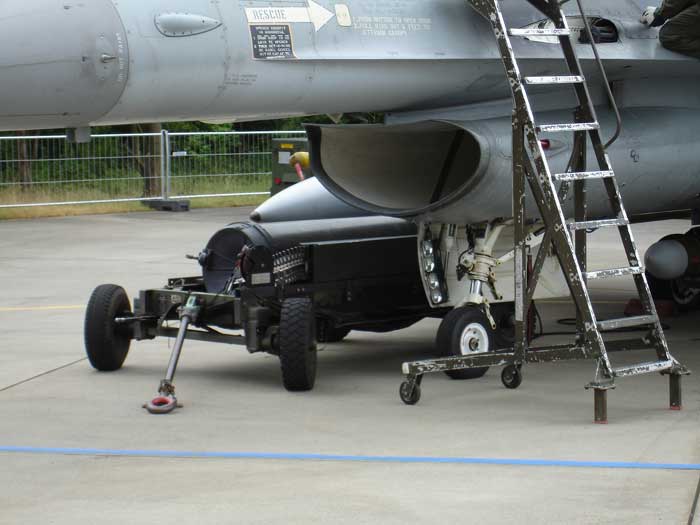 ![]() Pratt & Whitney F100 engine, as fitted in the first F-16 variant *(other variants like many F-16C and later versions got the GE F110 engine); they have a bigger air intake and different afterburner nozzles ![]() . ![]() .