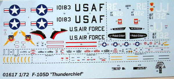 The F-105G Wild Weasel decals were only partly used as a MicroScale set was used that I had in my decalbox. I suggest to check reference books