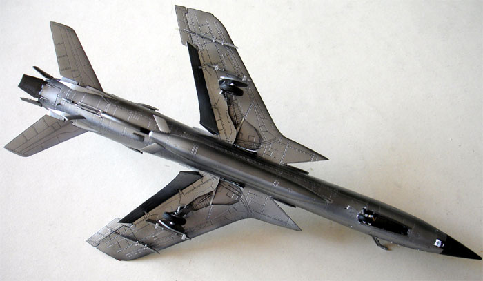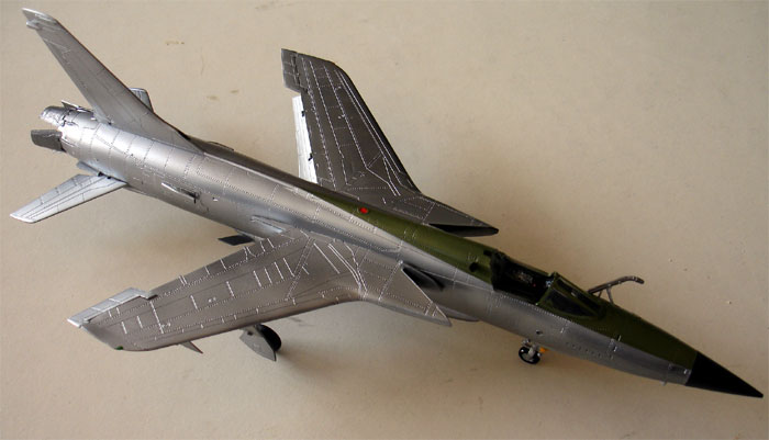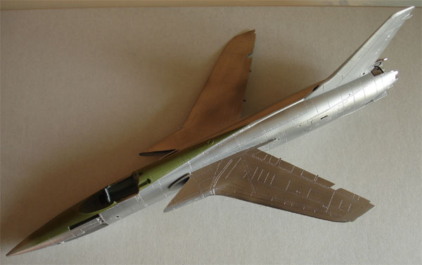 The F-105D got a metal scheme as per kit scheme "A" using ALCLAD II paint system. A gloss black base coat was applied