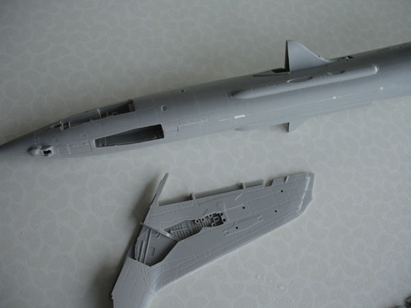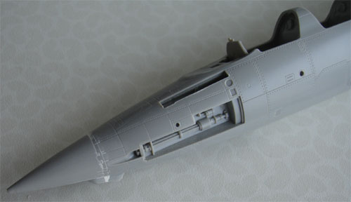 the radarnose fit of the fuselage needs filler. As noted, the nose is a