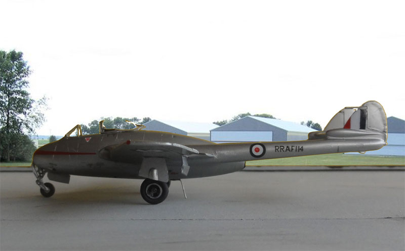![]() The first Vampire model released by Heller was made as a Rhodesian Air Force aircraft as used during the "bush war". The model got a high speed silver