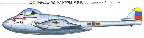 .. ![]() The De Havilland company in the United Kingdom designed during the Second World War a jet fighter and it was the time that development with this new type of propulsion began. The design from Air Ministry specification E6/41 incorporated a twin boom tail with a small thick fuselage that contained the jet engine. The wing was unswept and some structure was made of wood. Known as Vampire DH.100, it was a single seat aircraft with initially a Halford H.1 turbojet engine (that later evolved into the Goblin engine). First flight was amidst the Second World War in September 1943. The Royal Air Force ordered the type but the first squadron with aircraft really became operational not earlier than 1946 with the Mk.1. It had curved wing tips and bit more squared vertical tail fins. The canopy had a central sliding hood. Later Mk.1 produced Vampires had a Goblin 2, modified top and pressurized cockpit. Maximum speed was about 550 mph (885 km/hr) and it could carry 4 x 20mm cannons and a variety of (unguided) rockets. The F Mk.1 was used by the RAF but also by Sweden als J-28A and Switzerland. The F.2 was a Mk.1 with the more powerful Nene engine (this was the same engine that the Soviet Union was allowed to built in license and that powered the MiG-15 !). The Nene required extra air and initially a pair of extra elephant ear intakes were fitted first at the fuselage top; but after accidents aircraft were modified with intakes now fitted in the lower fuselage. The Mk.lll / F Mk.3 Goblin 2 powered Vampire fighter got increased tank capacity, the possibility to carry additional tanks and modified more rounded tail fins. The horizontal stabilizer was also slightly different and set in a lower position. The FB Mk.5 was the fighter-bomber version especially envisaged for ground attack and had the possibility to drop about 1000 kilograms of bombs and rockets and could carry under wing tanks. It still had the Goblin 2 but got reinforced wings with a smaller span with 2x1 ft clipped wing tips. As it was heavier it got a modified stronger undercarriage. Some 20 Vampires FB.5 were fitted with an arrestor hook, enlarged flaps, brakes and reenforced structure and were delivered to the Fleet Air Arm as "Sea Vampire". The FB.6 was a modified FB.5 that got a Goblin 3 jet engine and its export version was the FB.52. (with Fiat in Italy bmanufacturing the FB.52A). ![]() The FB.9 had a Goblin 2 and was to be used for operations in warm environments and thus had better cooling for the pilot and a modified starboard intake vane to get more air. The RAF Auxiliary squadrons also used this version. FB.30 and FB.31 were fitted with more powerful Nene engines with auxiliary extra intakes and built in Australia for the RAAF. FB.53 had the Nene 102B engine. Two seater versions developed included the DH.115 or T.11 and subversions like T.55, T.33/ 34 / 35. (The Vampire evolved also to the quite different advanced DH.112 Venom ground-attack and night fighter also for use from aircraft carriers). France had also flown the FB.5 from 1949 onwards. Sud-Est developed the Mistral, a Vampire fitted with Nene engine, larger air intakes and different top fuselage shape without the auxiliary extra intakes that RAF Nene Vampires had. This French type was called the Mistral and the first aircraft designated SE.532 did not have ejection seats. The SE.535 got French ejection seats (and many seats retrofitted to the SE.532). The RAF operated the Vampire in the Cold War as a front-line fighter until 1953. Later on many aircraft got secondary roles such as training and ground attack. The Vampire was also exported to many countries all over the World. Almost 3,300 Vampires were manufactured (many also by English Electric company) with an additional approx. 1.000 built under licence by Macchi-FIAT in Italy, in Australia and the "Mistral" by Sud-Est in France. Vampires flew in various conflicts like the first Arab–Israeli War, the Malayan Campaign and the Rhodesian Bush War. A whole series of Vampire models will be made and presented on these webpages. |