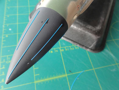 transparent red and blue with Tamiya clear paints. The nose pitot tube