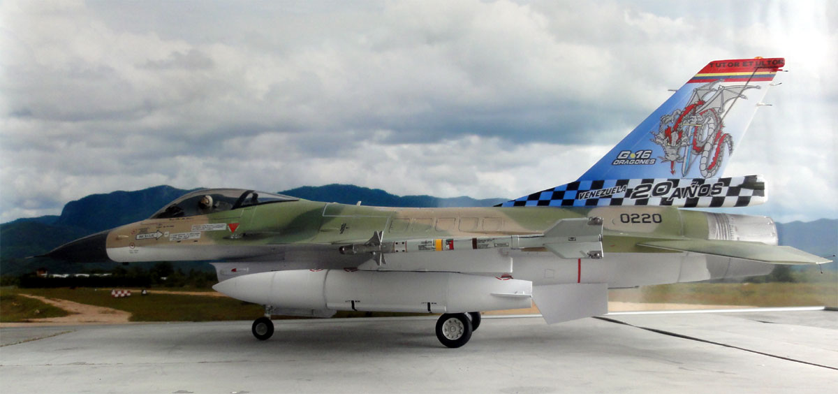 .. A few years later I got a couple of additional old Hasegawa 1/32 kits of the F-16A. It was decided to make a model of the F-16A as operated by the Fuerza Aerea Venezuela (FAV). . ...