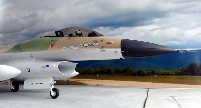 I did not bother to put too much effort in cockpit detailing as the canopy would be set closed with a pilot figure. Closing the canopy saves a lot of work as on previous kits. The FAV F-16A's