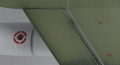 enlarged at the trailing edge with card, puttied and sanded.