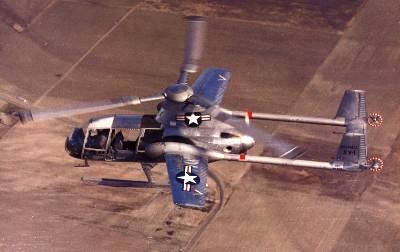 The McDonnell's XV-1 was developed for research to investigate the concept of a propeller driven autogyro with tip propulsion assistance in the blades. In 1954 it was first flown and 2 prototypes were build. It had tip pipes in the blades and was in fact an autogyro powered by a single 550 hp Continental R-975 nine-cylinder radial piston engine. It drove two air compressors to drive the tip exhausts and a two-bladed propeller was mounted at the rear of the fuselage for forward flight. Two small vertical props were mounted at the tail booms for yaw control. It reached a high speed of no less of 320 km/h, but it was thought that the the XV-1 was too complex. Conventional helicopters were also becoming better and faster, so the program was canceled in 1957.