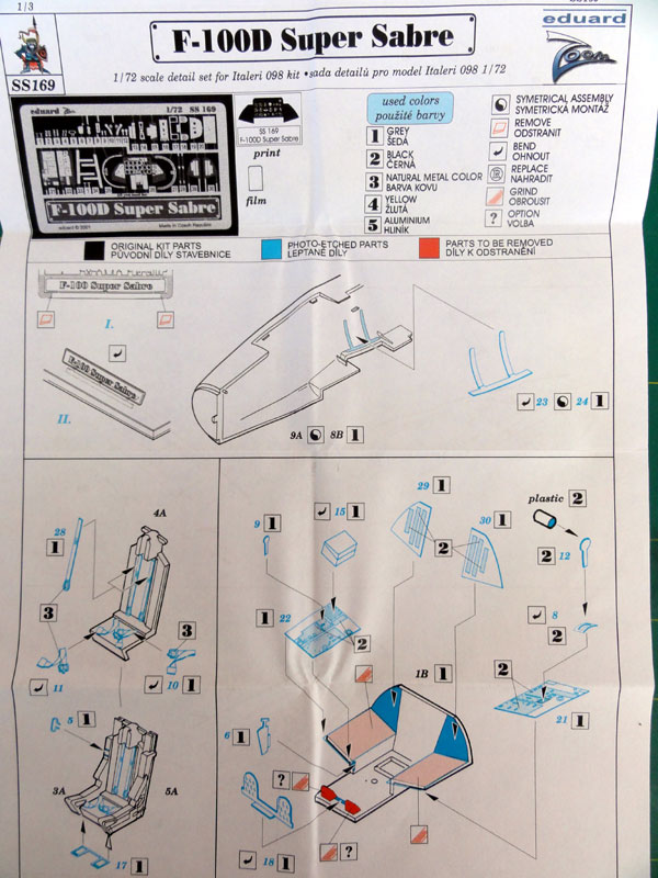 The ESCI kit F-100D (no 9022) from 1982 was a great improvement over earlier kits in 1/72 scale. This kit has about 75 parts in tan coloured plastic and looks fine with some recessed panel lines.