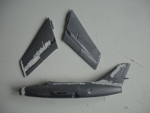 seen too late. After sanding, another coat of ALCLAD II aluminium was applied.