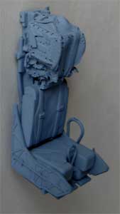 The seat seen in medium grey primer. Next step is detailling, starting with the cockpit interior. | |