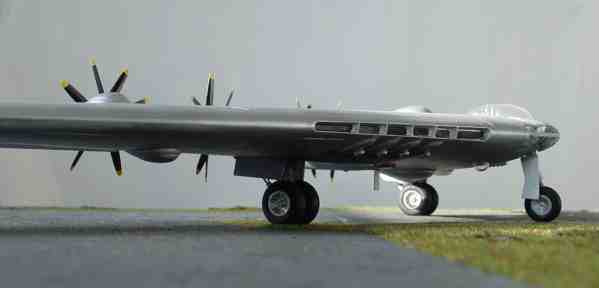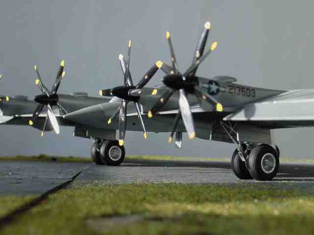 be an intercontinental bomber reaching Europe from the US. ![]() But not earlier than June 1946, this XB-35 Flying Wing bomber made the first flight. Four Pratt & Whitney R-4360 Wasp Major engines each drove a pair of four-bladed pushing props ("Y" type), the later version having the counterrotating props ("X" type). The XB-35 had directional problems and had a very small center of gravity range, big issues for a bomber. Its long propeller driveshafts gave tremendous cooling problems. A later variant with bigger fins and jet engines as the YB-49 flew later. The flying wing was however never put into production, the after war B-47 being preferred as a straight conventional bomber. The Flying wing model is from AMT / ERTL and is in 1/72 scale; the model was released mid nineties. It is an excellent model, the only difficulty being to finish it nicely in bare metal! You only need to add some tiny arials next to a large nose weight to prevent "tail sitting".